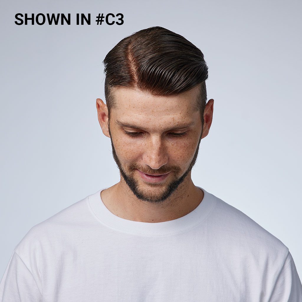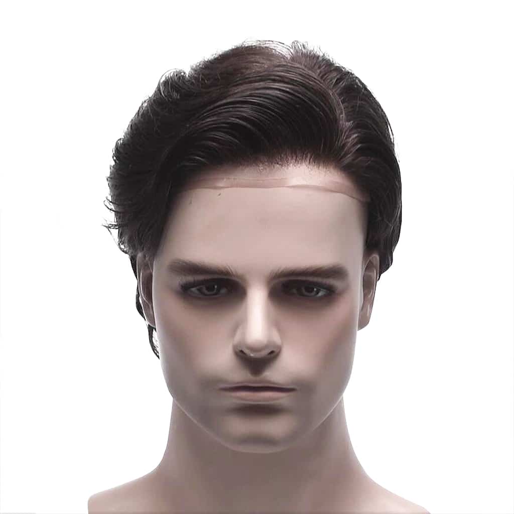 This fine mono hairpiece for men is both natural and durable. The base has monofilament in the majority, and a 1″ skin gauze perimeter. Both mono and skin gauze are solid materials, meaning the base will last for a long time. We use Swiss lace for the front 1″ to create a realistic front hairline.