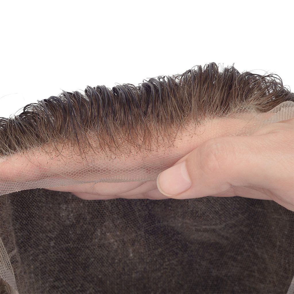 The LFV008+ men’s lace front hairpiece boasts a 0.08mm transparent skin as the central part of the base. This skin is firm but not too thick, retaining a natural look.