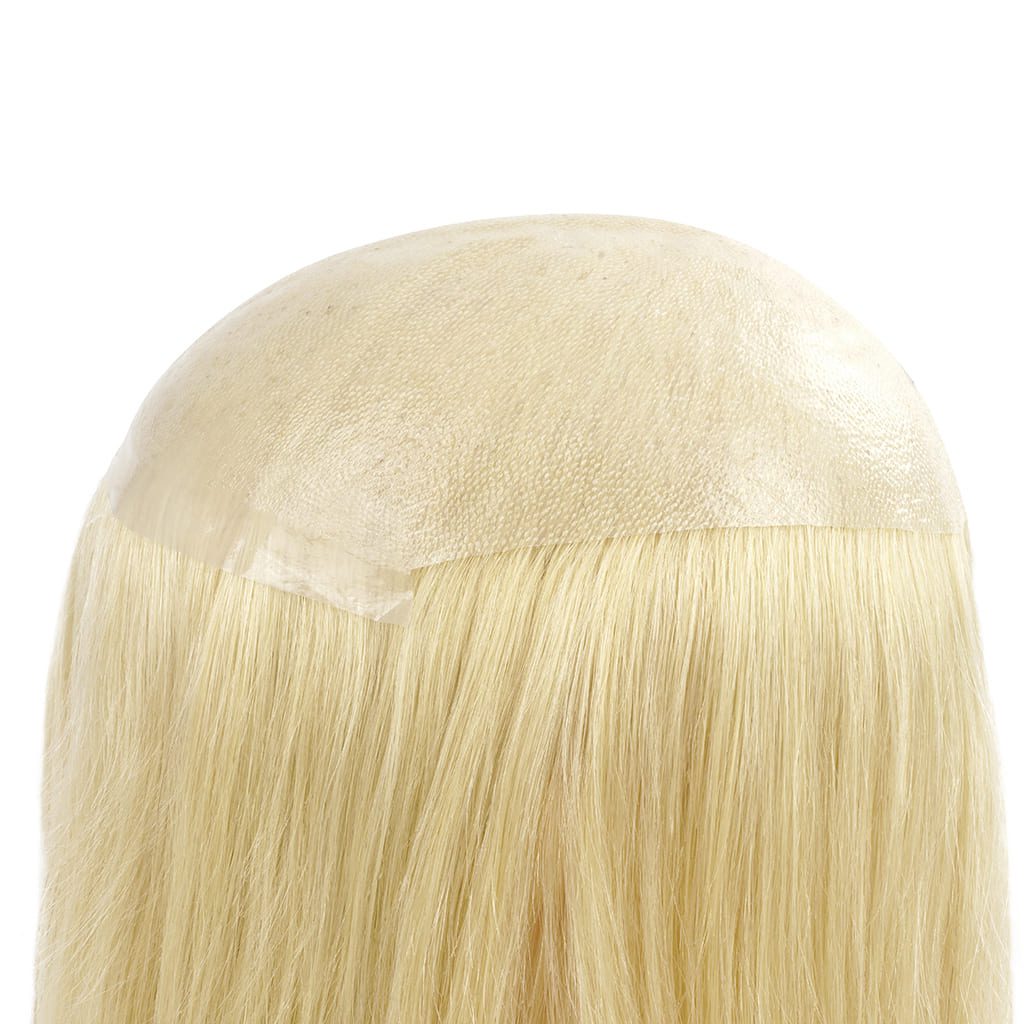 The PU skin base of this women’s toupee melts perfectly into the wearer’s scalp, giving the most realistic-looking hairlines and parts.