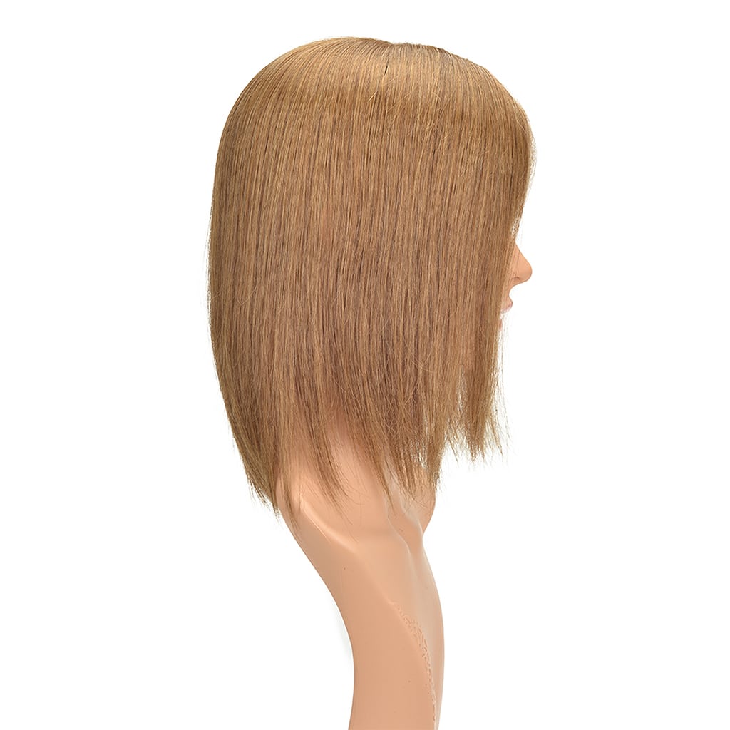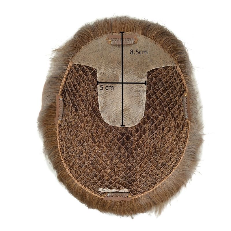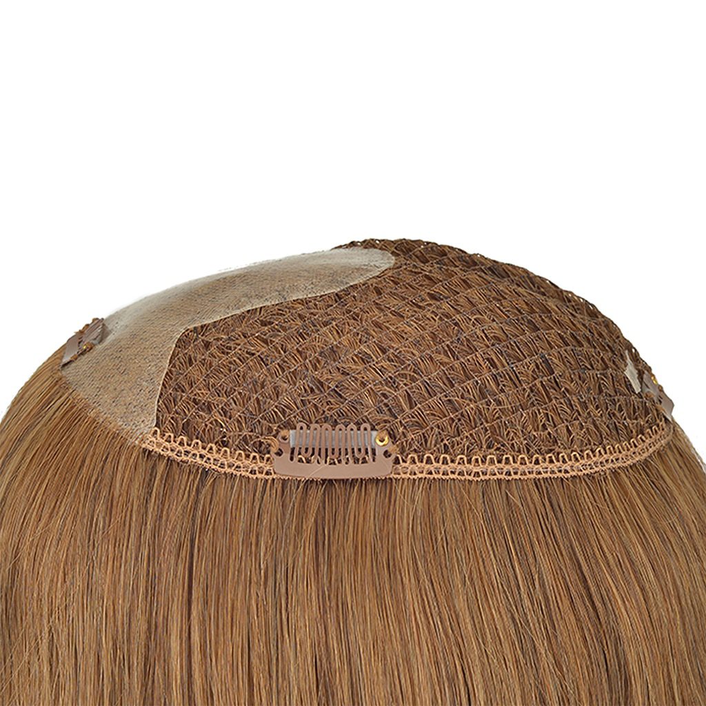 The base is made of single PE line with a PU front and flower net all around with 4 sewn-on clips. The single PE line is very thin and creates an invisible appearance. With a PE line base, wearers can simply pull their natural hair through the holes of the piece. Clips around the edge mean the piece can be firmly attached to the hair of the wearer.
